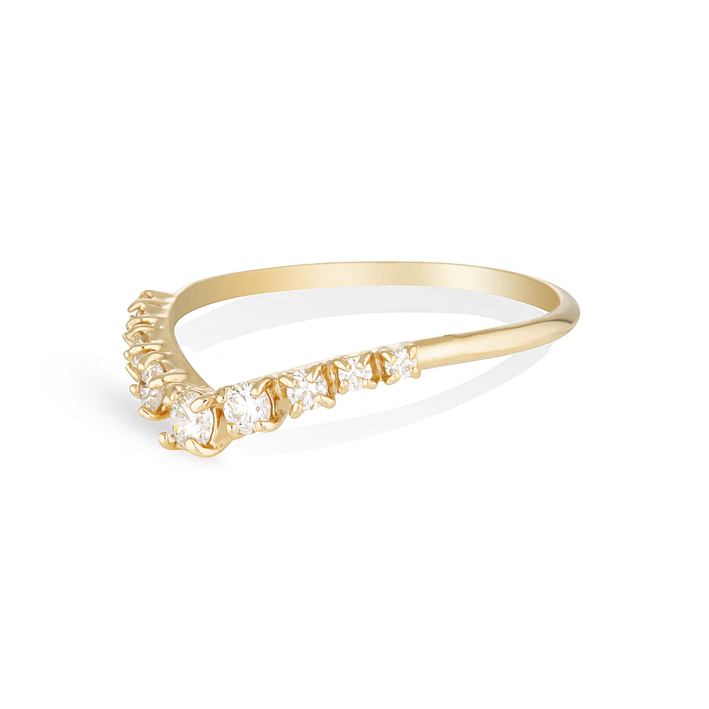 Gracefully proportioned and elegantly modern. The Alexa is a dream fit with our other engagement styles. Featuring nine white diamonds in different sizes to create a shimmering curve.