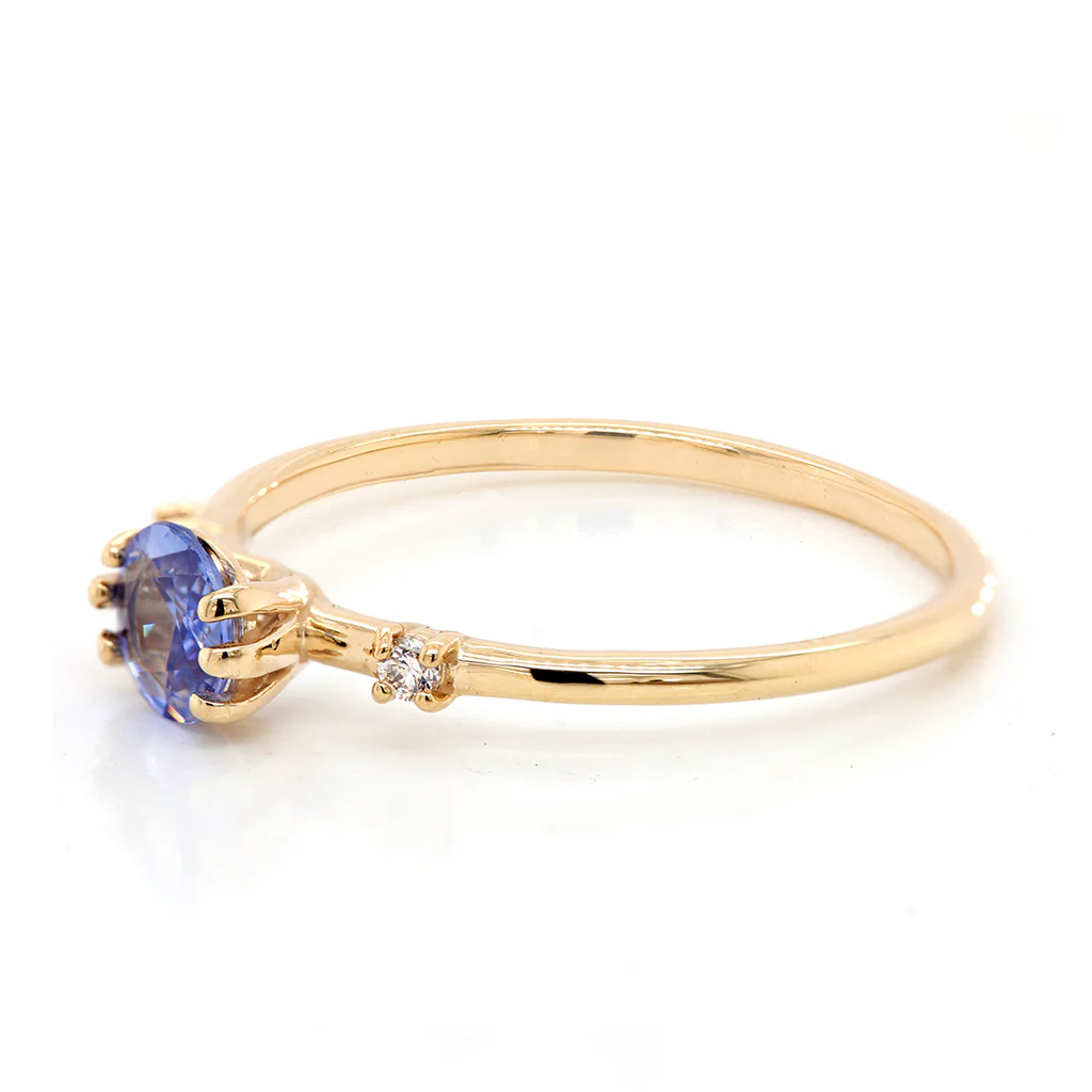 Stunning in its simplicity, our Lana II ring is set with an eye-catching blue sapphire and two shimmering white diamonds.
