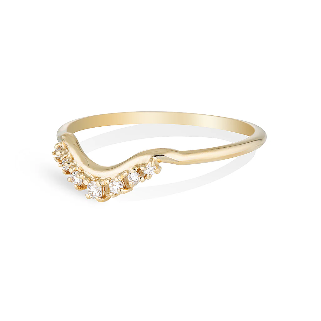 Minimalist with a sparkling statement. The Mia is a dream fit with our other engagement styles. Featuring seven white diamonds in different sizes to create a shimmering curve.