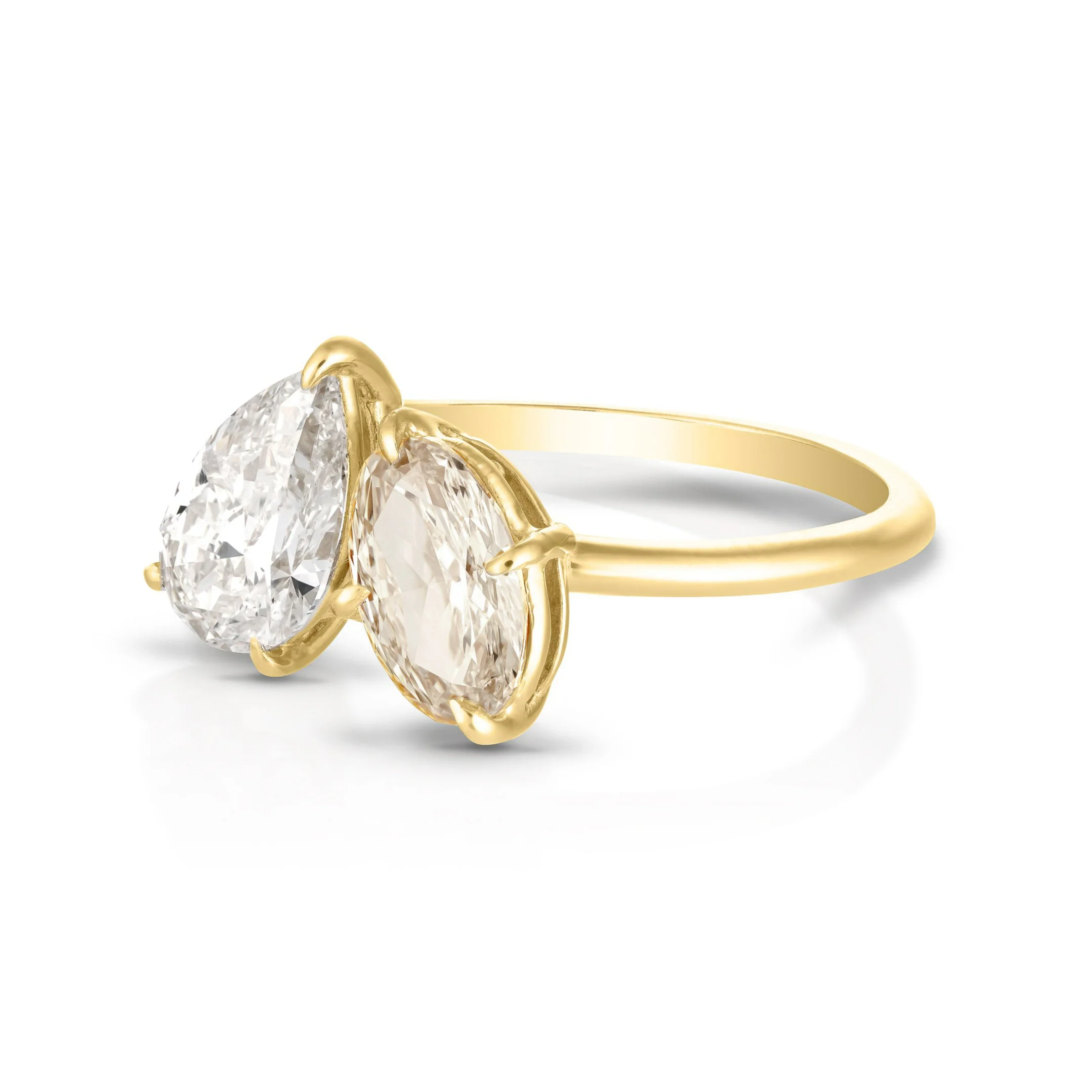 A classic re imagined, the Toi Et Moi ring celebrating the union of white pear and champagne oval diamonds working harmoniously together to create a stunning forever ring.